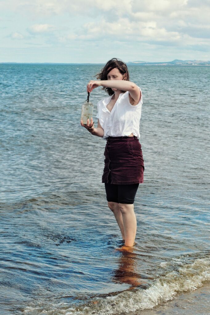 Jenny Pope exhibits her coracle-form as part of her Buoyancy in Unprecedented Times project, representative of a hand-built ‘lifeboat’ which she has created from clothing donated by local residents. The vessel evokes the possibiity of navigating hope in uncertain times, and follows on from its launch into Portobello Sea along with community led singing and swimming earlier in September as part of the Art Walk Porty programme.