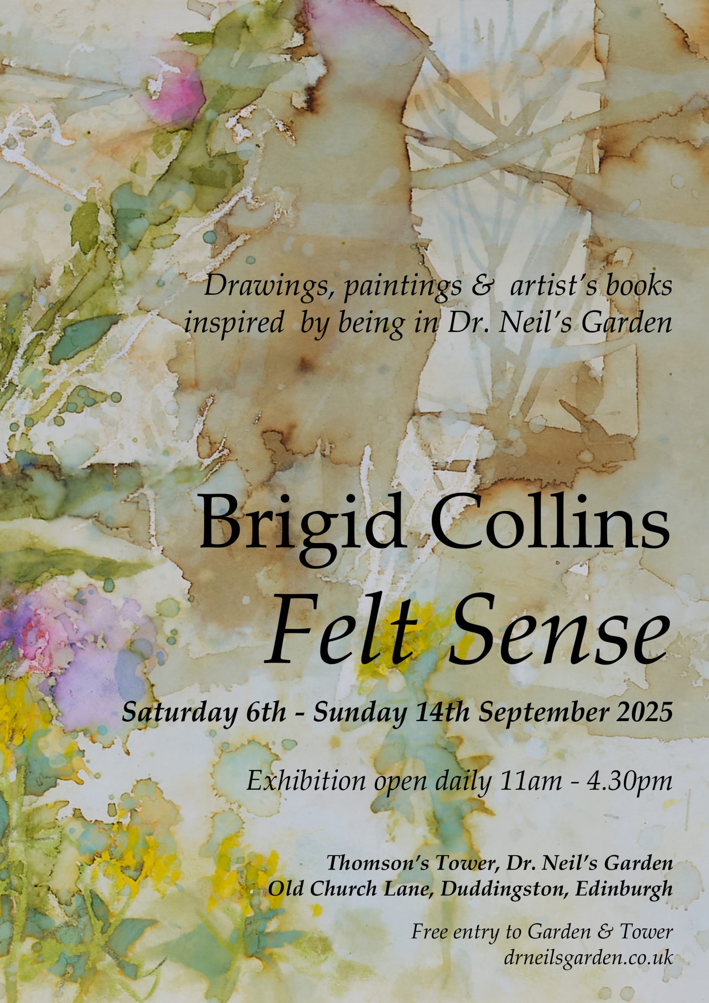 Alongside Brigid Collins Felt Sense exhibition at Dr Neil’s Garden (opening during Art Walk Porty: 6th-14th September), Brigid is running a couple of workshops on Saturday 13th September: