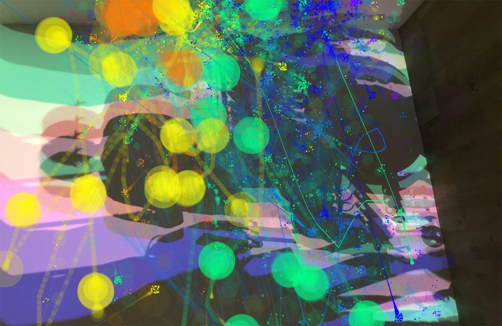 Greta’s paintings respond to on-site experiences at Portobello Amusements, then worked with using ‘Jitter’ software where the image moves in response to Greta’s music. The work is made in collaboration with Drake Music Scotland.