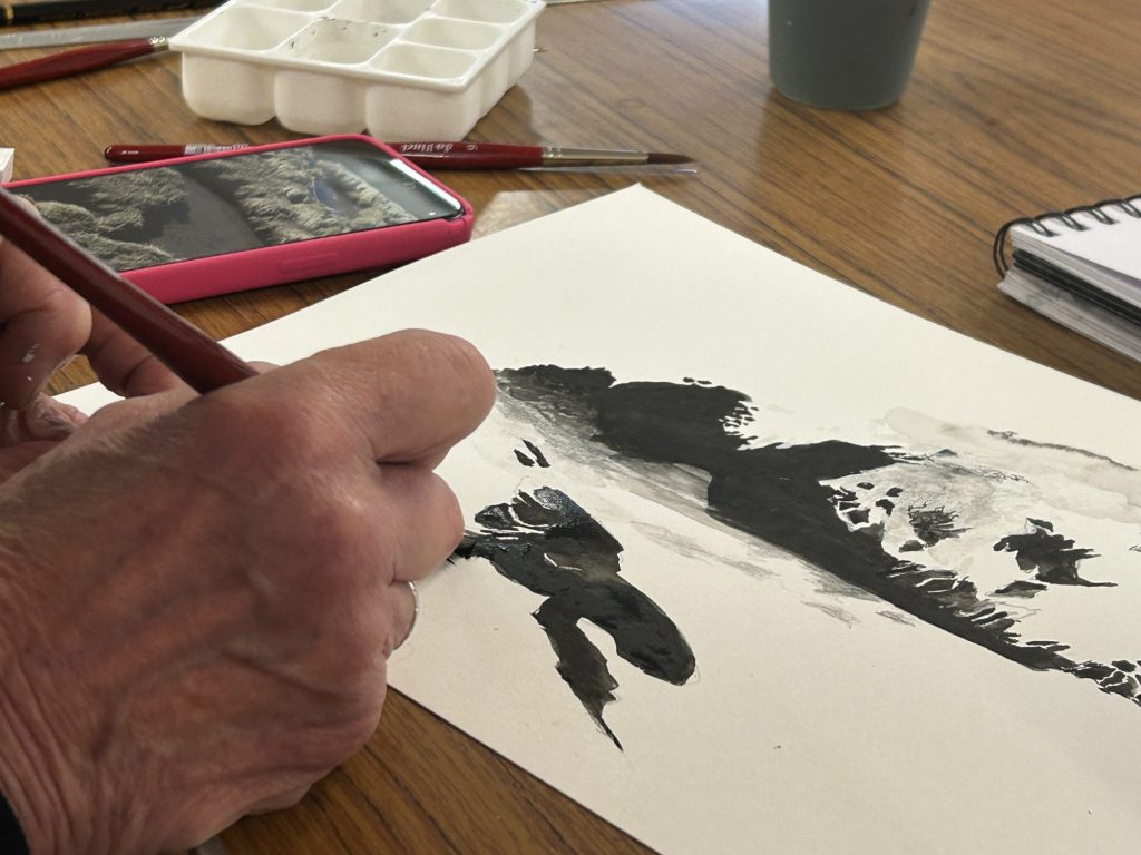 Artist Linde Ex leading walkshop at Aberlady Nature Reserve (January 2025)