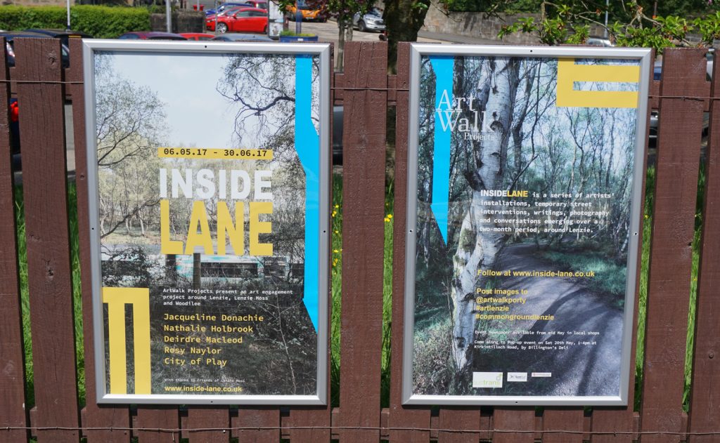 Working with artists Jacqueline Donachie, Deirdre Macleod, City of Play, Rosy Naylor and Nathalie Holbrook a series of temporary installations took place in local woodlands, shops and street spaces over a two-month period, along with the publishing of an ‘Inside Lane’ newspaper (2017) and public consultation events working with Sustrans.