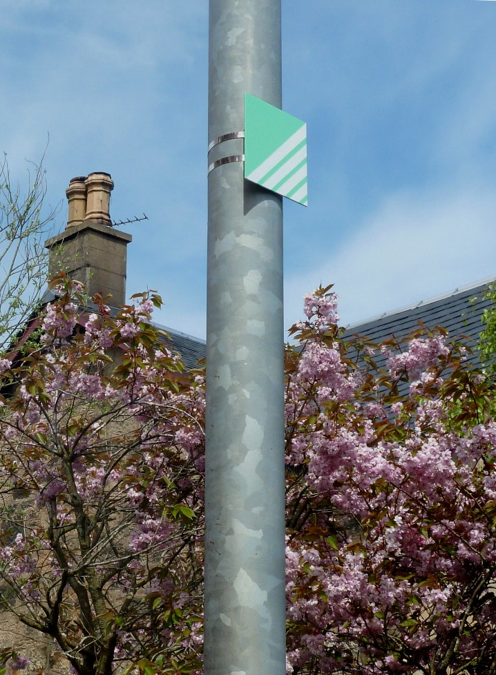 Rosy Naylor ‘Ling. Lug. Luggie. Lane.’ played on old words to describe Lenzie. ‘Lane’ coming from the word meadow, or swampy plain, and upon which the ‘Inside Lane’ project is named. ‘Ling’ is the old Scots for the common heather, and a prefix for bog-grass. ‘Lug’ is applied to a root vegetable that contains too much leaf or stem, due to being cultivated on land too rich. ‘Luggie’ refers to ground which produces such crops. Rosy’s intervention was situated at the entrance to Strathkelvin Railway Path from Woodilee Road.