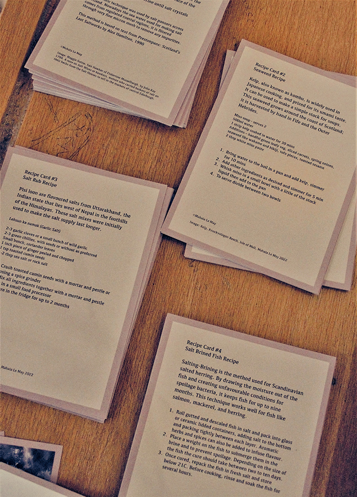 Le May is leading a series of participatory tasting sessions, discussion events and workshops, underpinned by collaboration with local community groups as well as by the artist’s research into modern salt-production technologies and historic salt industries, including at Portobello, Joppa and Prestonpans. Each event aims to celebrate and interrogate the emotional resonance of food and invites participants to explore how flavour informs and is informed by culture, history and the environment.